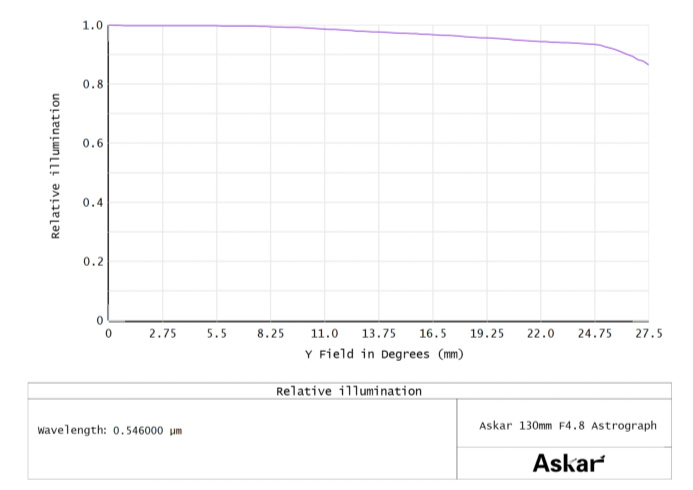 ・イメージサークルはミディアムフォーマット(φ55mm)に対応しており、フルサイズ(φ44mm)の広大なセンサー領域をカバーするだけでなく、最周辺部まで豊富な周辺光量を確保します。周辺光量はミディアムフォーマット最周辺で約 85%、フルサイズ最周辺で約 95%に達します。・中心部の RMS スポット半径はわずか 2μm 以下、フルサイズの周辺部でも 2.4μm 以下という驚異的な星像を実現。周辺減光や星像の歪みを最小限に抑え、画像処理の負担を大幅に軽減します。