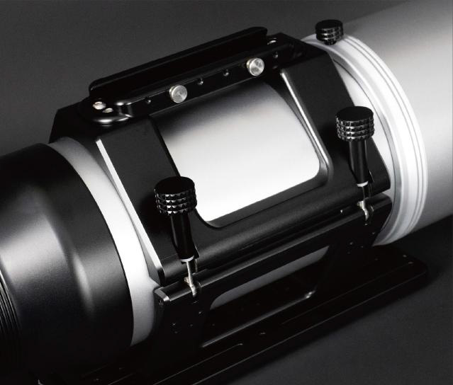 ・鏡筒下部には長さ 300mm の幅広ドブテイルプレートが標準付属し、大型の赤道儀にも安全かつ安定した搭載が可能です。