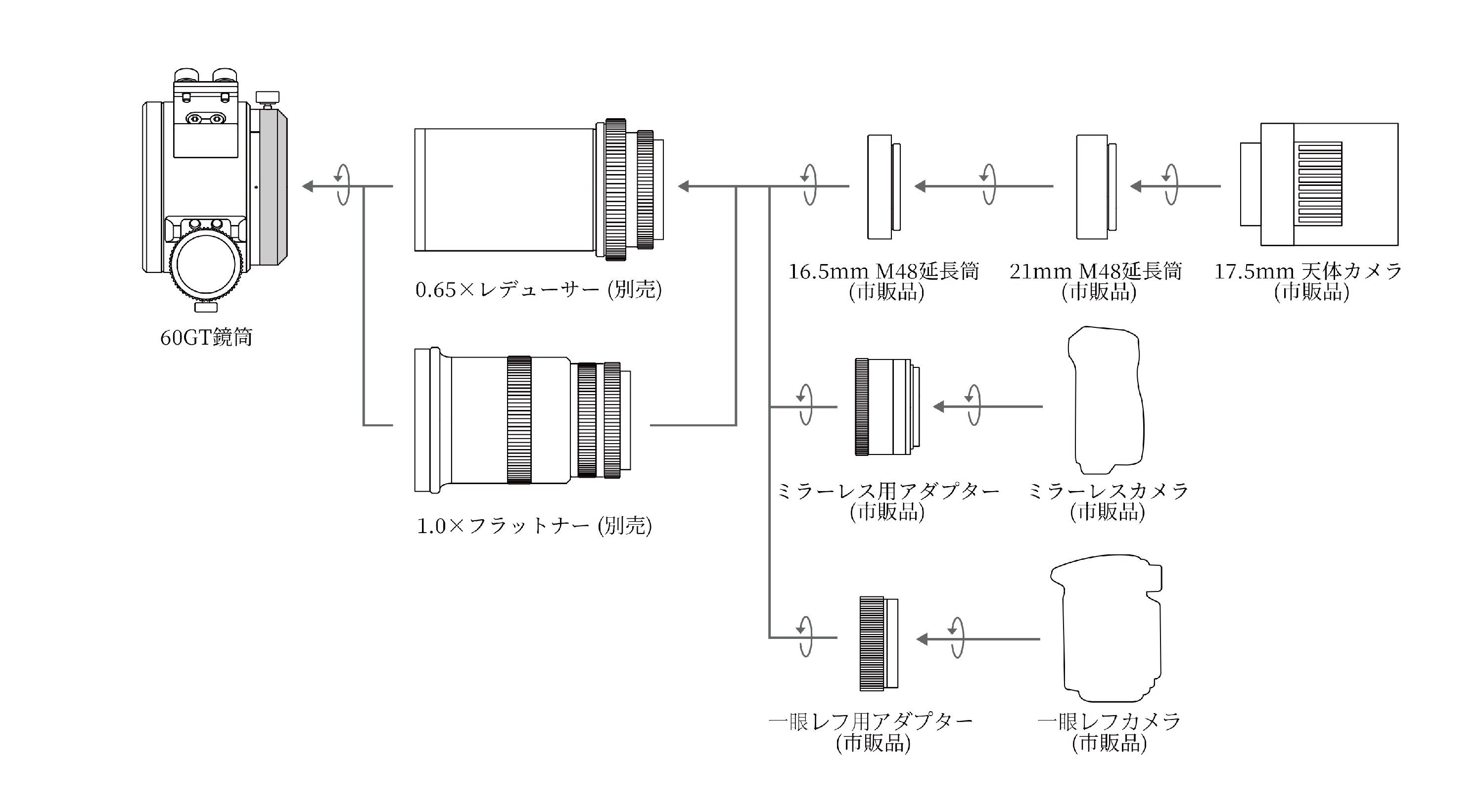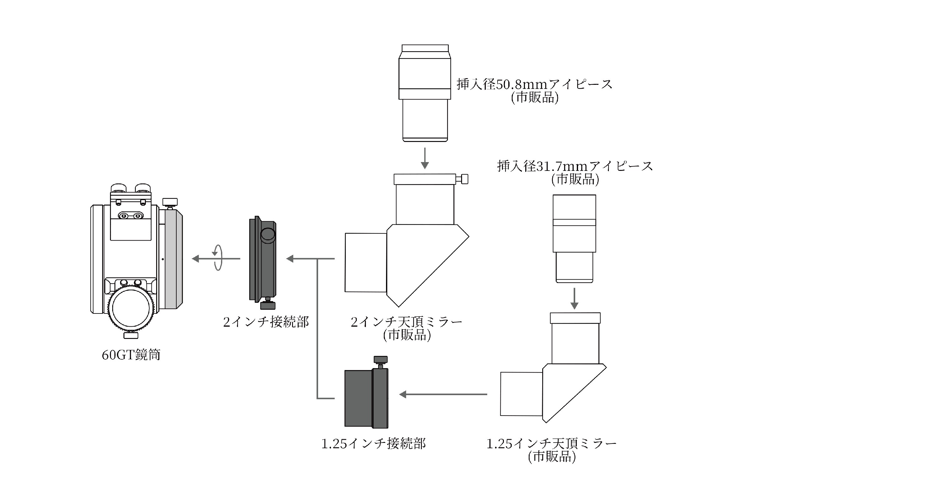 | 標準付属品 | キャリングハンドル、鏡筒バンド、アリガタプレート、31.7mm接眼アダプター、50.8mm接眼アダプター、製品説明書、保証書 |