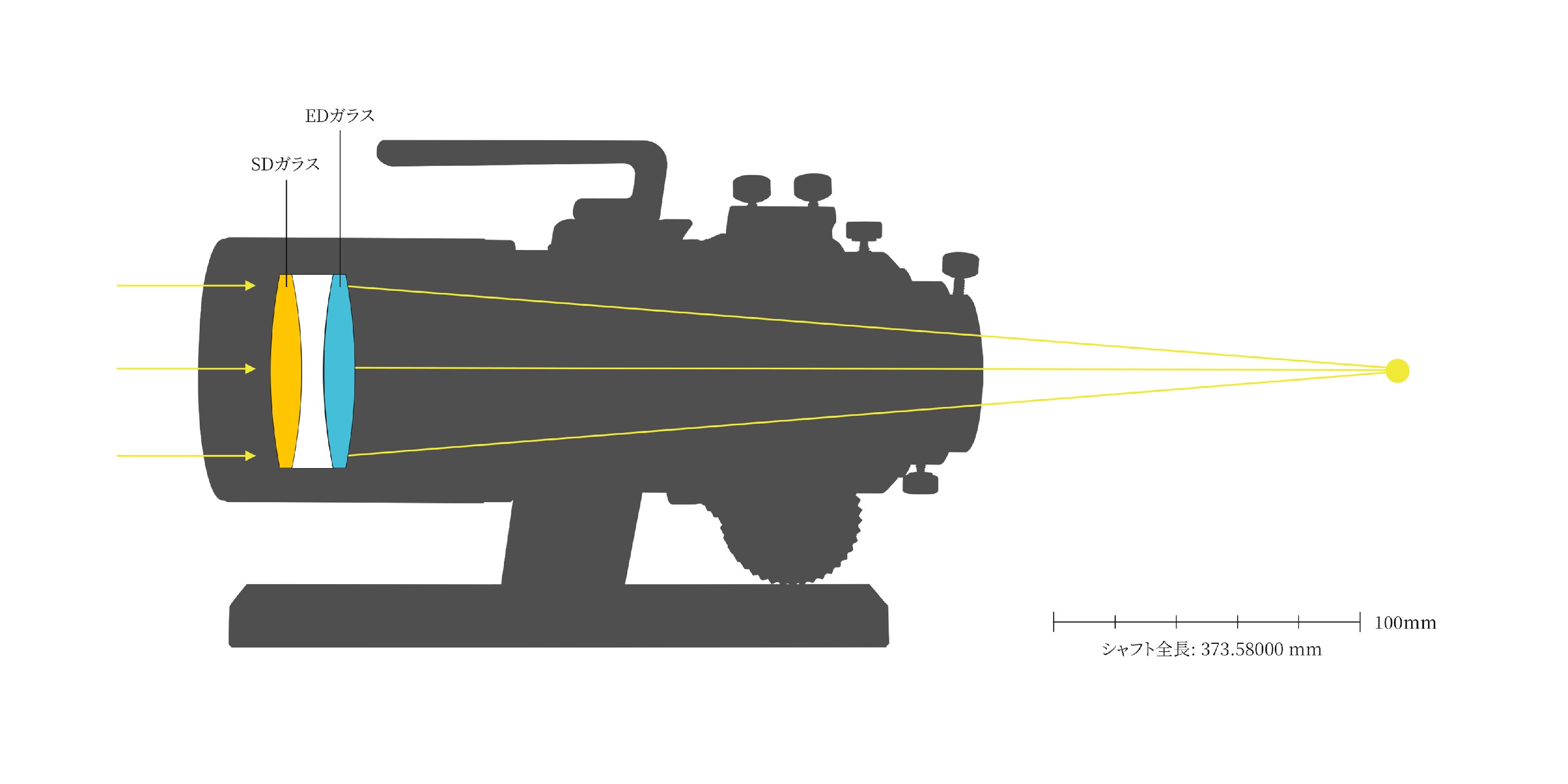 | 光学系 | 3枚玉アポクロマート SDガラス(日本製)1枚・EDガラス1枚採用 |