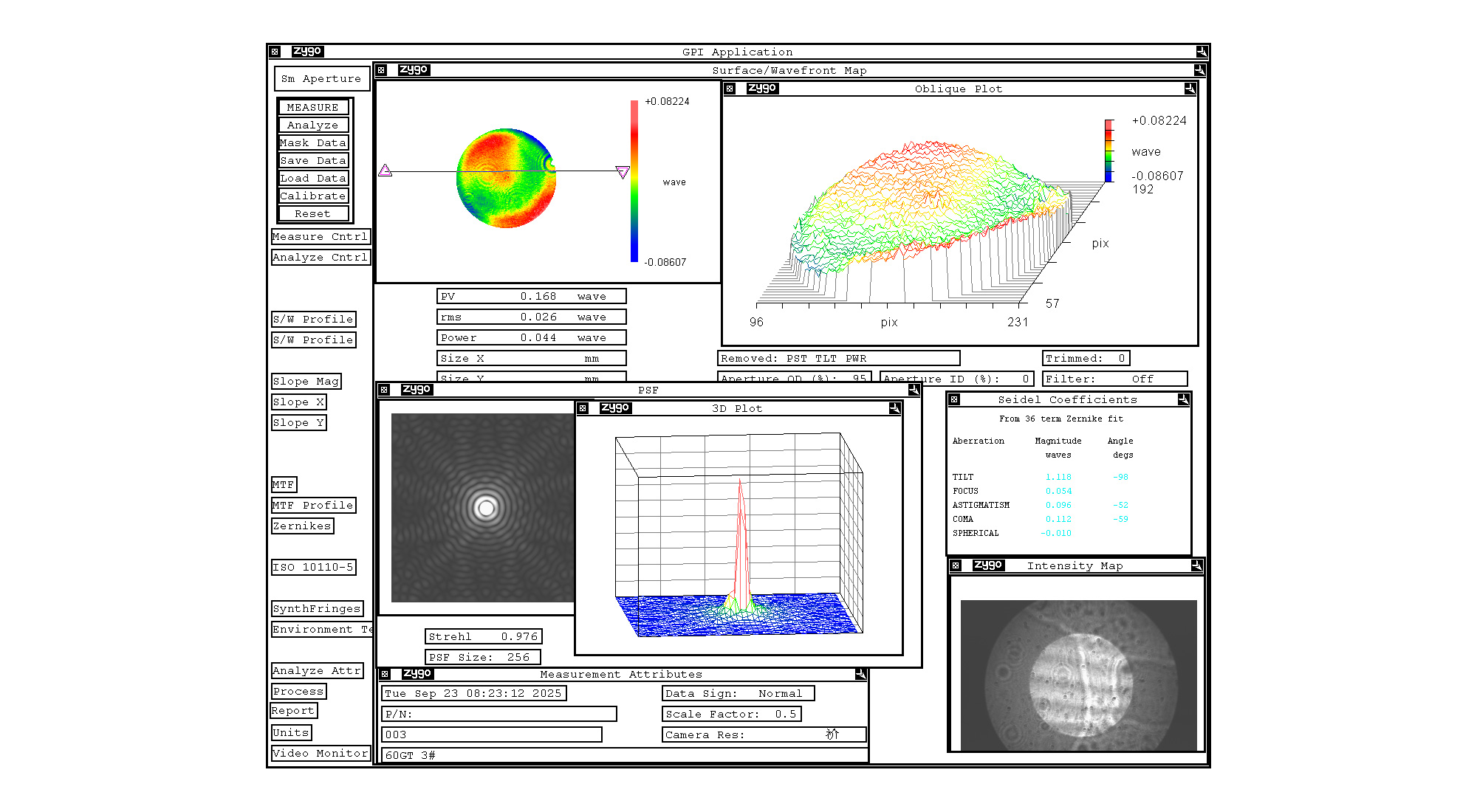 ・NAKOH 60GTの光学性能は、ZYGO干渉計によって精密に検査されています。ストレール比は97.6%、RMS値は0.026λ(λ/38に相当)、PV値は0.168λを達成し、非常に高精度に組み立てられていることが分かります。・ロンキー試験においても、焦点内外像の均質さから、レンズの組み込み、研磨精度の高さが確認できます。