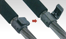 開脚角度が自動的に標準位置に戻る機構です。フル開脚は、調整ノブを引き上げ(又はスライドさせ)脚を開きます。セミ開脚、標準開脚は脚を閉じて設定します。■可変石突