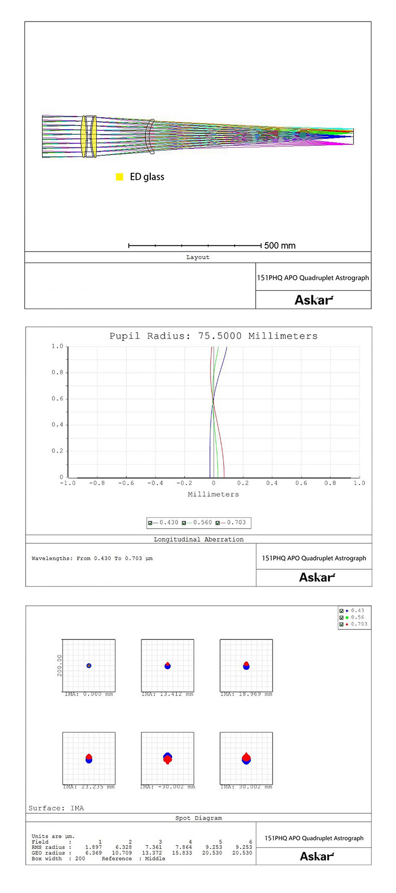 - 別売の 107/130/151PHQ 用レデューサーを 併用することで 、焦点距離 740 mm 、F4.9 の明るいフラットフィールドアストログラフとしてお使いいただくことができます。