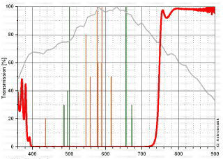 742nm以上の赤外光領域のみを96%以上透過する月・惑星撮像用フィルター。シンチレーションの影響を受けにくい長波長領域を利用するため、シーイングの悪い条件化でも常にシャープで解像度の高い画像が得られます。特に月面や火星の強拡大撮像に最適。またバックグラウンドの明るさを大幅に減じる効果があるため、日中の月・惑星撮像に用いても効果絶大です。