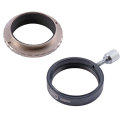 42mm取付け対応のクイックリリース装置。内径37mmもあり光路上のケラレなどは発生しません。大きな締め付けノブ及びアリガタ部は丈夫なステンレス製。42mm径対応ですから、天頂プリズム等との併用が可能です。厚み15mm。