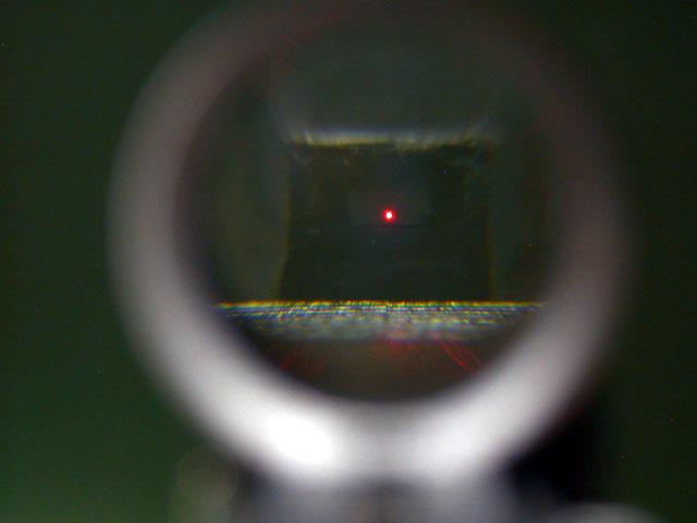 等倍のスクリーン(通常のファインダーでいう対物レンズ)から片方の目でLEDドットを確認し、もう片方の目で実際の星空を同時に見る事で、目的の対象を「視覚的に」容易に望遠鏡の視野へ導入が可能です。