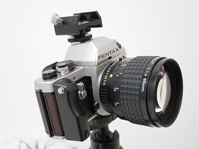 ![]() ペンタックスLXに装着したエツミ製E-6615とアリミゾ式ファインダー台座BK【0610】。 |