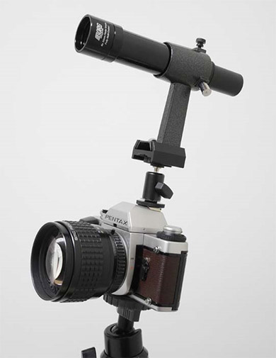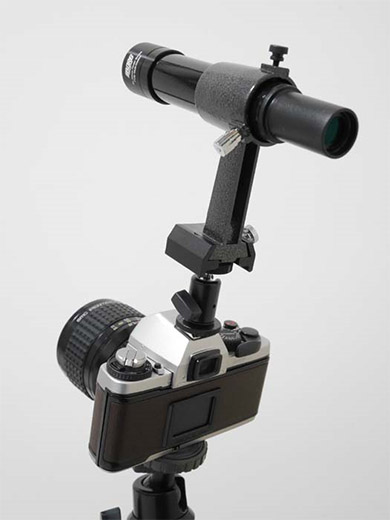 - 例えば、エツミ製のアダプターE-6615やE-6283などと組み合わせるとカメラのホットシューにも装着可能になり、天体写真の構図決めに絶大な威力を発揮。