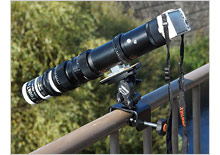 左:ペンシルボーグ25+【5014】(試作品)、右:PENTAX・Qボデー+ELニッコールシステム(【5014】に簡易回転装置が内蔵されているので、レンズの向きを任意に固定できます。 | ![]() |