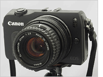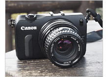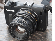 - EOS-Mと引伸ばしレンズの組み合わせは、デザインも相性もベストマッチ。注目を浴びるコンビです。