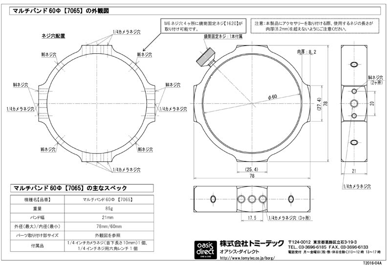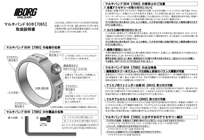 - 多機能・軽量・快適と3拍子揃った新型60Φ(パイ)鏡筒バンド。常時装着していたいパーツです。