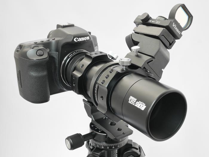 ![]() 本製品をM57/60延長筒に装着。さらにアリミゾ式ファインダー台座BK【0610】を装着。 |