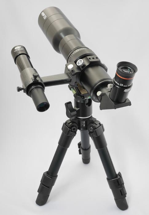 ![]() 55FL+7880【6258】に装着したマルチバンド60Φ【7065】2本(1本は台座【0610】+ファインダー【0630】を装着、もう1本はアルカスイス台座【8992】を装着) |