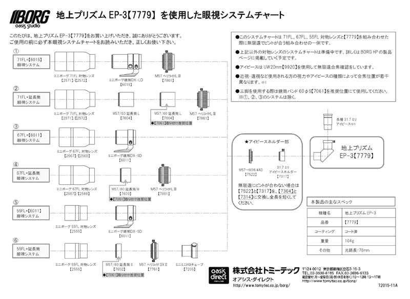 地上プリズムEP-2 【7522】 M57→M36.4AD 【6011】 ミニボーグ鏡筒DX-SD 【7317】 31.7ミリアイピースホルダー |
