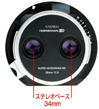 | レンズ | 38mm F2.8 3群4枚構成×2 ステレオベース:34mm | ||