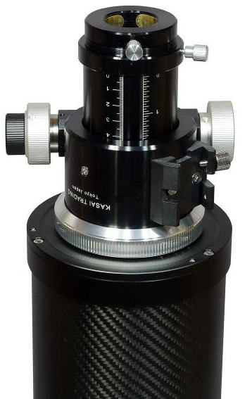 CNC切削加工による2インチ大型接眼部を搭載。減速比1:10の微動ノブにより、高倍率惑星観測や写真撮影時などのシビアなピント位置を逃しません。極めて軽く回せるため、合焦操作に伴う微振動の発生も大幅に減少します。もちろん通常の粗動ハンドルによるスピーディなフォーカシングも可能な2スピードタイプ。小型ベアリング4個とローラーによるフリクションで合焦操作を行なうクレイフォード式のためアソビやバックラッシュも皆無。テンション調整ネジやストッパーネジも装備。M56規格のオスネジが設けられているため、他メーカーの写真用アクセサリー等の接続も可能。更にEAFなどモーターフォーカスを追加装着できる設計になっているため、本格的な天体写真撮影にもフルに対応しています。付属の31.7mm変換アダプターにはM48フィルターネジ完備。アイピース固定部は2インチ&31.7mmとも真鍮リング締付式を採用。最大ストローク42mm。ドローチューブ上部には各種計測や写真撮影時に便利なスケールも標準装備。接眼部全体が360゜回転可能なため、写真撮影時の構図決定にも非常に便利です。■155mmロングバックフォーカス