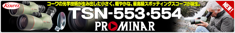 - 対物レンズ有効径は55mm、ボディは*全長271mm、重さも約800gとコンパクトさ、軽さを実現。 ハイクォリティ&アクティブなスポッティングスコープを手のひらサイズで体感してください。 ※TSN-553 PROMINARの数値
