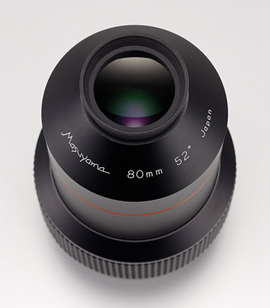 また個性的かつダイナミックな広視野観測を可能とするMasuyama 80は、大型シュミカセ鏡筒や、公共施設の超大口径かつ超長焦点鏡筒を持つ望遠鏡において、さらにその力を発揮します。口径356mm/F11のC-14鏡筒に使用した場合、倍率は49倍、実視界はなんと1.1°という、これまで同鏡筒では実現が難しかった広い視界を与えてくれます。さらに公共天文台等で使用される500mm/F15大型カセグレン鏡筒においても、94倍という低倍率を実現し、かつ実視界では0.55°を確保するという性能を持ちます。スバルなどの大きな星雲星団や満月などに対して、Masuyama 80のパワーと大口径鏡筒の集光力とのコラボレーションが、観測者に究極のパワフルさと驚異的なインパクト、そしてこれまで見た事の無い感動を与えてくれることは間違いありません! このようにMasuyama 80は、通常の望遠鏡においては未知の広い視界を実現し、そして長焦点望遠鏡においてはこれまで観測が難しかった大天体のド迫力を、その魅力を失わずに最大限に観測者へお届けする事が出来るという、まさにオリジナリティの溢れた優秀な性能となっています。 |