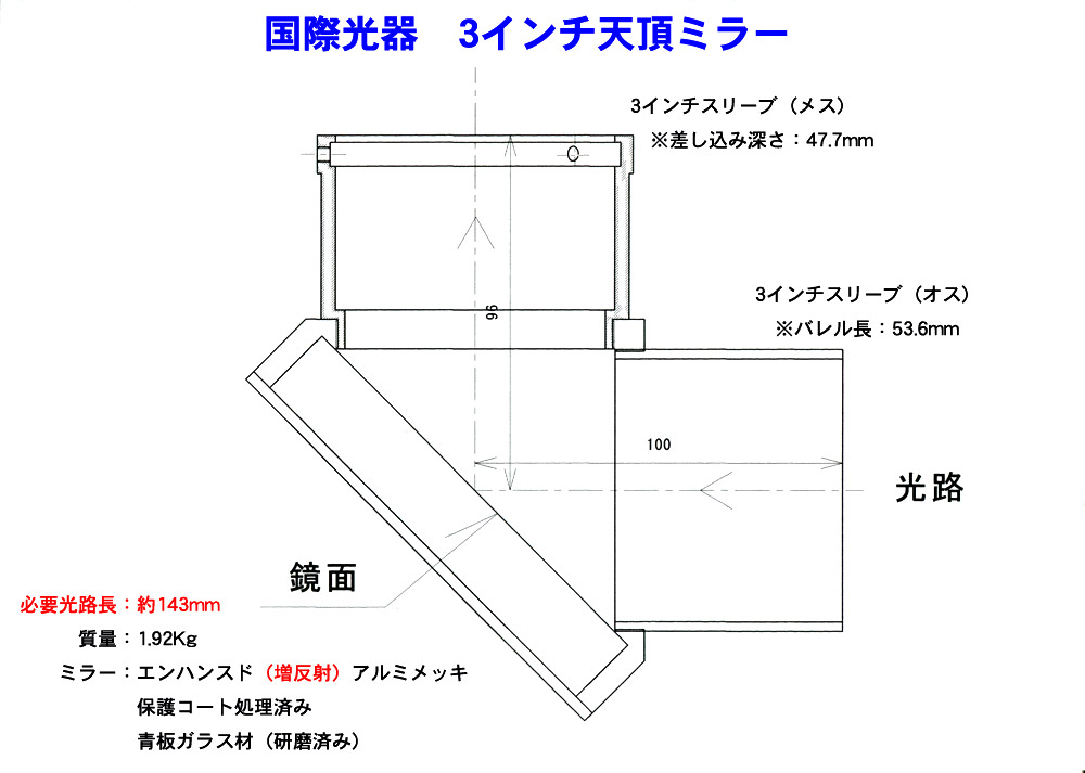 | ■オリジナル3インチ天頂ミラーセットで低倍率、ケラレのないワイドな実視野を実現。 |