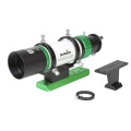 - 対物レンズにEDガラス(S-FPL53)を採用した高品質ガイドスコープです。ピント調整は対物レンズ側の回転と接眼側のヘリコイドを併用します。