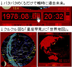 | 世界地図 | 観測地点プリセット可能、サマータイム・海抜対応 | |
