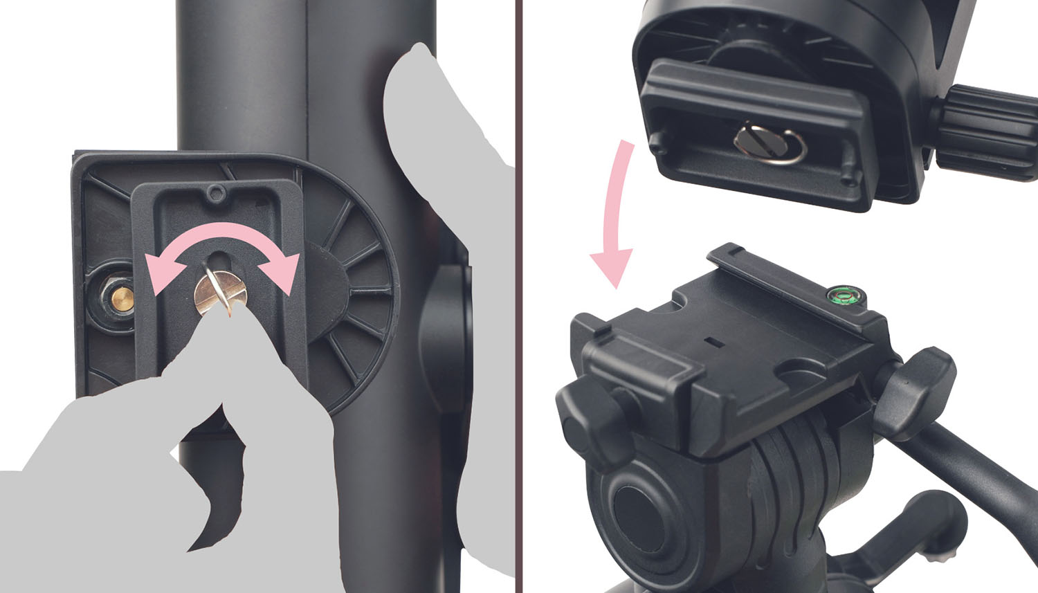 ●2Way雲台:上下・左右の大きな動きも、ハンドルとクランプで操作可能。