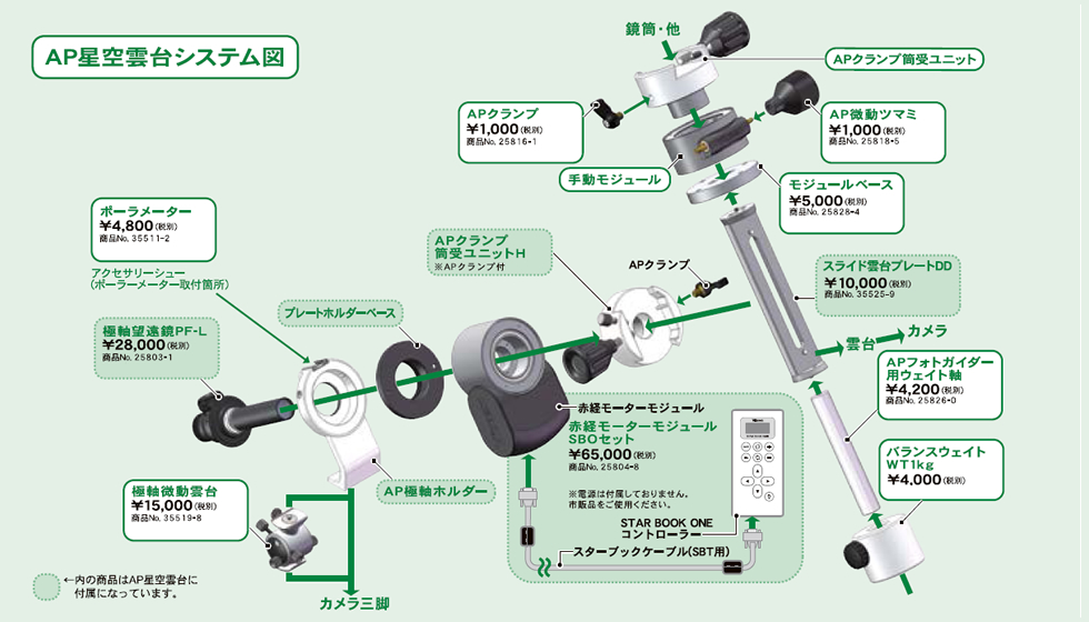 | APをベースにした本格的ポータブル赤道儀 APモジュールパーツの組み合わせにより生まれたポータブル赤道儀です。 |