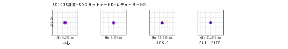 | SDフラットナーHD + レデューサーHD 焦点距離(倍率) F値 | 625mm→496mm(0.79x) F7.7→6.1 | 795mm→624mm(0.79x) F7.7→6.1 | 890mm→699mm(0.79x) F7.7→6.1 | - | - |