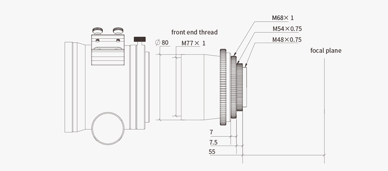 ●M68/M54/M48×P0.75mmのネジでCMOSカメラや関連アクセサリーに接続します。