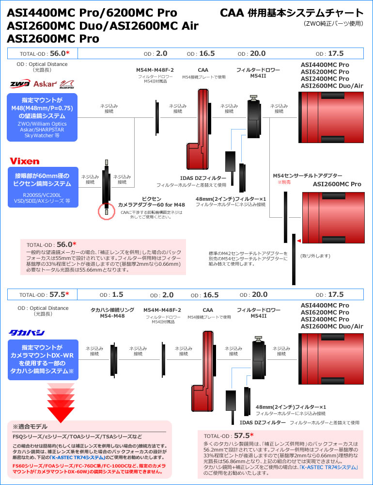●各社望遠鏡システムに接続する場合、下記の組み合わせが推奨となります。
