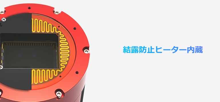 ●ASI6200MC Proには、結露の問題を回避するための平面ヒーターを内蔵しています。保護窓に完全に接合する防露ヒーターの加熱で、結露の心配を回避します。