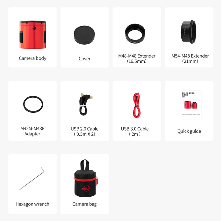 | 付属品 | M54-M48延長筒:21mm/M48-M48延長筒:16.5mm/M48-T2変換リング USB3.0 ケーブル(2m)/USB2.0ケーブル(0.5m)×2/2インチスリーブキャップ 六角レンチ/カメラケース 製品保証案内書/KYOEIオリジナル日本語取扱説明書(Online) |