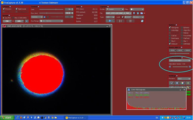 | C-MOSカメラなどでの撮影の際には、接眼レンズで良好な位置を探してからカメラに交換してください。より最適な位置に調整する為には、カラーカメラを接続し、撮像用ソフト(SharpCap や Firecapture)のCOLOR Saturation を最大にして飽和させることで微妙な調整が可能になります。 | ![]() |