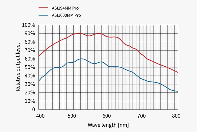 ●ZWOのBSI(裏面照射型)モノクロカメラであるASI294MMは、非常に高いQE性能を誇り、カラー版だけでなくASI1600MMよりも高いQE性能を備えています。QEピーク値は約 90%と推定されます。