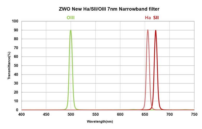 ZWO社製SIIフィルターは、波長672nmの波長域を半値幅7nmで通過させるナローバンドフィルターです。HαフィルターやOIIIフィルターとともにSAO(SHO)合成撮影に使用します。 - OIIIフィルター