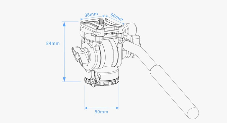 油圧式の雲台で、非常に滑らかな動きを実現。 軽く触れるだけで、パンとチルトの目盛りを簡単に調整できるので、初心者の方にも最適です。 ※画像の三脚は別売です。